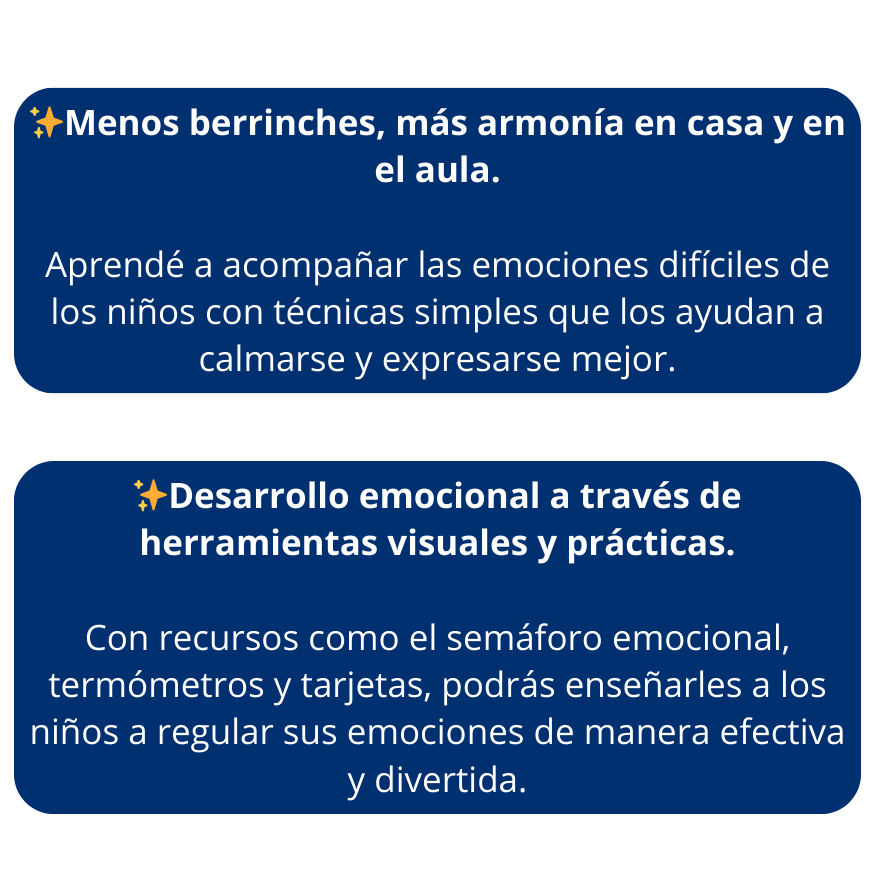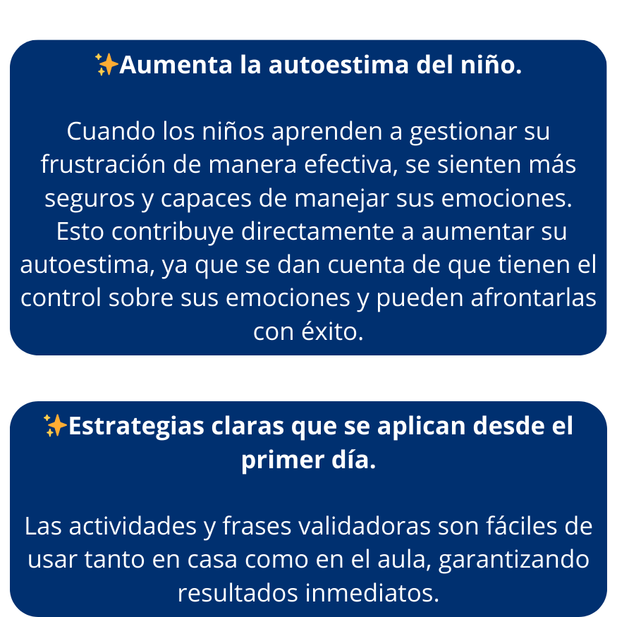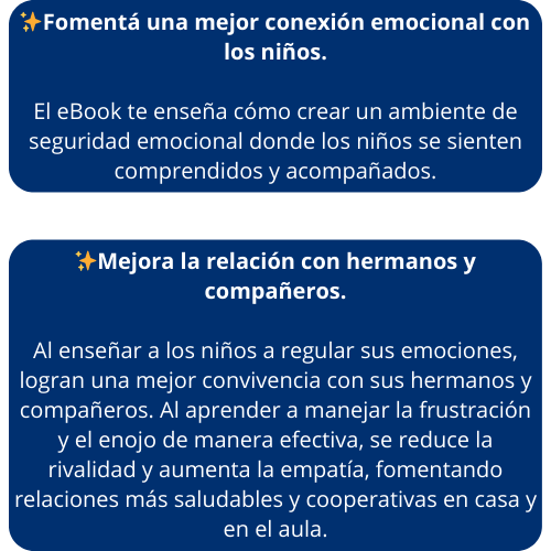 Este ebook es perfecto tanto para padres como para educadores. Las herramientas están diseñadas para aplicarse de manera rápida y efectiva en el hogar o en la sala/aula. Además, incluye actividades grupales y recursos visuales ideales para el trabajo en equipo y la regulación emocional de los niños en cualquier entorno educativo.